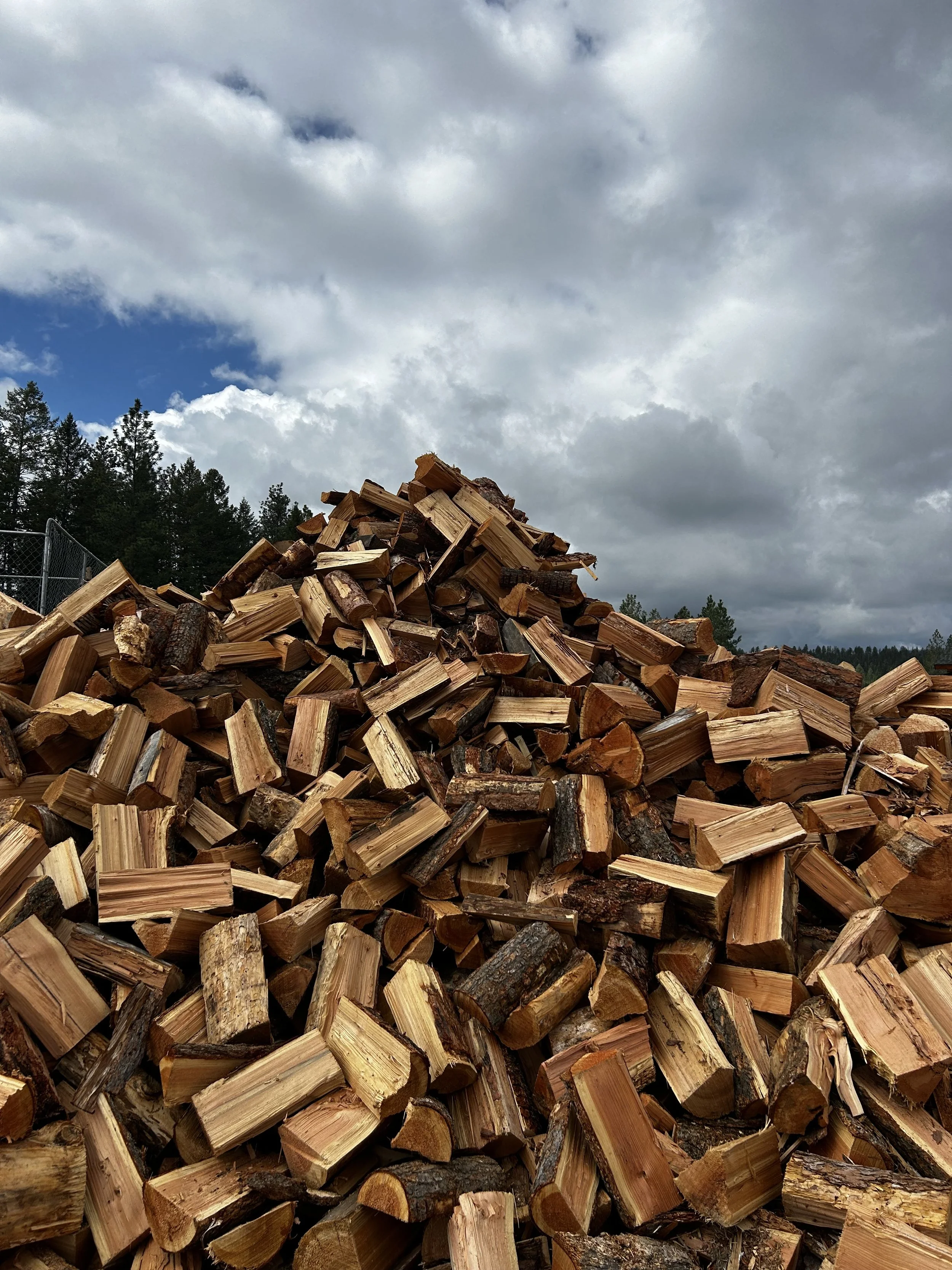 Our white wood is currently made up of about 60% lodgepole pine with some white pine and spruce mixed in. White wood in general is the softer, quicker burning wood of the two categories we offer. You won’t get as long of a burn time with it, but many people prefer heating their home with lodgepole, as it splits nicely, burns clean and is easy to ignite.